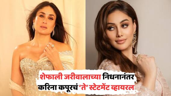 Kareena Kapoor On Botox: शेफाली जरीवालाच्या (Shefali Jariwala) मृत्यूनं लोकांना धक्का बसला आहे. मीडिया रिपोर्टनुसार, ती अँटी-एजिंग ट्रीटमेंट घेत होती. तिच्या मृत्यूनंतर ही औषधं घ्यावीत की, नाही यावर जोरदार चर्चा झाली. दरम्यान, करीना कपूरचं वक्तव्य व्हायरल होत आहे, ज्यामध्ये तिनं म्हटलं आहे की, ती बोटॉक्सच्या विरोधात आहे.