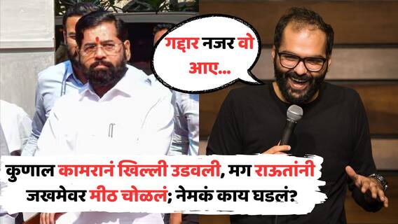 Kunal Kamra Triggers Row Sings Song: स्टँडअप कॉमेडियन कुणाल कामरानं (Kunal Kamra) उपमुख्यमंत्री एकनाथ शिंदे (Eknath Shinde) यांच्यावर एक कविता सादर केली. पण, याच कवितेनंतर शिवसैनिक संतापानं लालबुंद झाले आणि थेट कुणाल कामराचा ज्या स्टुडिओमध्ये शो पार पडला थेट त्याची तोडफोड करायला पोहोचले. काही शिवसेनेच्या नेत्यांनी, आमदार, खादसारांनी थेट कुणाल कामराला धमक्या देण्यास सुरुवात केली. एवढंच नाहीतर कुणाल कामरासोबतच ठाकरेंच्या शिवसेनेचे नेते विशेषतः संजय राऊतही (Sanjay Raut) शिंदेंच्या शिवसैनिकांच्या निशाण्यावर आले. पण, नेमकं कुणाल कामरानं कोणती कविता गायली? कुणाल कामराच्या शोमध्ये काय घडलं? त्यानं कोणत्या मुद्द्याला हात घातला? एकनाथ शिंदेंवर त्यानं अशी काय टीका केली? शिवसैनिकांचा उद्रेक होण्यामागे कारण नेमकं आहे तरी काय? हे सविस्तर जाणून घेऊयात...