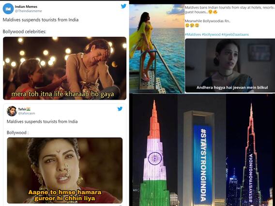 बी- टाऊनच्या या सर्व सेलिब्रिटींनी त्यांच्या सुट्ट्यांदरम्यानचे फोटो सोशल मीडियावर पोस्ट केले होते. पण, आता मात्र याच फोटोंमुळं त्यांची खिल्लीही उडवण्यात येत आहे. मालदीवमध्ये भारतीय पर्यटकांवर बंदी घातल्याचं जाहीर होताच सेलिब्रिटींची प्रतिक्रिया नेमकी कशी असेल याचे असंख्य विनोदी मीम्स अनेक युजर्सनी पोस्ट केले आहेत. चित्रपटातील संवादस एखादं दृश्य इथपासून काही छायाचित्रांचा आधार घेत सध्या हे प्रकरण कमालीचं व्हायरल होत आहे.
