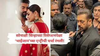 सोनाक्षी आणि झहीरच्या रिसेप्शन पार्टीतील सलमान खानचे काही फोटो समोर आले आहेत. या फोटोंमध्ये कडेकोट बंदोबस्तात भाईजान कार्यक्रमस्थळी प्रवेश करताना दिसत आहे. सोनाक्षी सिन्हा आणि झहीर इक्बाल यांच्या रिसेप्शन पार्टीसाठी सलमान खान कडेकोट बंदोबस्तात कार्यक्रमस्थळी पोहोचला. या फोटोमध्ये सलमानला बॉडीगार्डने घेरलेले दिसत आहे.