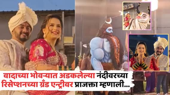 प्राजक्ता आणि शंभूराजची एन्ट्री डोळ्यांचं पारणं फेडणारी भव्य अशी होती. एका भव्यदिव्य अशा नंदीवर बसून प्राजक्ता गायकवाडनं दणक्यात एन्ट्री घेतली. अनेकांना एन्ट्री आवडली, पण काहींना मात्र ही एन्ट्री जास्तच खटकली. या ग्रँड एन्ट्रीसाठी प्राजक्ता आणि शंभूराज एका भव्यदिव्य अशा नंदीवर बसलेले. त्या मिरवणुकीत पुढे भगवान शंकर आणि शिवगण पायी चालत होते. मराठमोळ्या परंपरेचा हा शाही थाटबाट लक्ष वेधणारा ठरला. प्राजक्ता, शंभूराजची नंदीवरुन एन्ट्री होत असताना फटाक्यांची आतिषबाजी करण्यात आली. पण, सर्व अगदी थाटामाटात, धुमधडाक्यात सुरू असताना उपस्थितांना जे खटकलं नाही, ते नेटकऱ्यांनी हेरलं आणि प्राजक्ता गायकवाडला फैलावर धरलं. ती गोष्ट म्हणजे, प्राजक्ता, शंभूराजच्या ग्रँड एन्ट्रीवेळी पायी चालणारे भगवान शंकर.