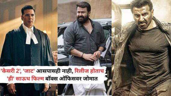 'थुडारम'च्या जबरदस्त कलेक्शननं पडद्यावर सर्व बॉलिवूड चित्रपटांना मागे टाकलं आहे. 'थुडाराम' सोबत प्रदर्शित झालेल्या 'ग्राउंड झिरो'नं तीन दिवसांत फक्त 4.92 कोटी रुपये कमावले आहेत. रविवारच्या कलेक्शनमध्ये, अक्षय कुमारचा 'केसरी 2' 8.15 कोटी कमाई करून 'थुडारम' नंतर दुसऱ्या क्रमांकावर आहे. तर 'जाट' आतापर्यंत फक्त 1.79 कोटी रुपयांची कमाई केली आहे.