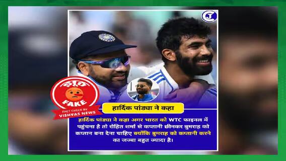 नवी दिल्ली (विश्वास न्यूज): भारत आणि ऑस्ट्रेलिया यांच्यात पाच कसोटी सामन्यांची बॉर्डर गावसकर ट्रॉफी सुरु आहे. दोन्ही संघ मालिकेत बरोबरीवर आहेत. या दरम्यान सोशल मीडियावर हार्दिक पांड्याच्या नावानं एक खोटी पोस्ट व्हायरल केली जात आहे. ज्यामध्ये हार्दिक पांड्यानं जागतिक कसोटी अजिंक्यपद स्पर्धेबाबत एक दावा केल्याचे दावे केले जात होते. जर भारताला जागतिक कसोटी अजिंक्यपद स्पर्धेच्या अंतिम फेरीत जायचं असेल तर रोहित शर्माकडून कर्णधारपद काढून घेत जसप्रीत बुमराहाला द्यावी, कारण त्याच्याकडे नेतृत्व करण्याची क्षमता दिसून येते. हे खोटं वक्तव्य हार्दिक पांड्याच्या नावावर शेअर केलं जात आहे.