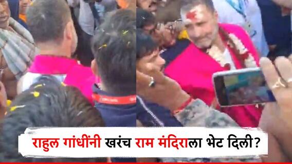 मुंबई : या लोकसभा निवडणुकीत (Loksabha Election 2024) काँग्रेस, इंडिया आघाडीचा (INDIA Alliance) विजय व्हावा म्हणून काँग्रेसचे नेते तथा खासदार राहुल गांधी (Rahul Gandhi) हे मोठ्या ताकदीने प्रचार करत आहेत. वेगवेगळ्या लोकांशी ते संवाद साधत आहेत. ते रायबरेली या मतदारसंघातून निवडणूक लढवत आहेत. दरम्यान, सध्या त्यांचा एक व्हिडीओ शेअर केला जात असून उमेदवारीचा अर्ज भरल्यानंतर त्यांनी उत्तर प्रदेशमधील अयोध्या येथील राम मंदिराचे दर्शन घेतल्याचा दावा केला जातोय. तसेच राहुल गांधी हे मंदिरात जाऊन दर्शन घेत असताना मोदी-मोदी असे नारे दिले जातायत, असाही दावा हा व्हिडीओ शेअर करून केला जातोय. याच पार्श्वभूमीवर राहुल गंधी यांनी खरंच अयोध्येतील राम मंदिराचं दर्शन घेतलं आहे का? हे जाणून घेऊ या...