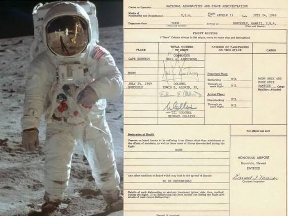 सोशल मीडियावर व्हायरल झालेल्या फॉर्ममध्ये, प्रतिष्ठित अपोलो 11 मिशन अंतराळवीरांच्या स्वाक्षऱ्या दिसू शकतात. 'कृषी, सीमाशुल्क, इमिग्रेशन आणि पब्लिक हेल्थ' या कॅटेगरीनुसार फॉर्म भरण्यात आला असून यात 'चंद्रावरून प्रस्थान आणि होनोलुलू, हवाई, यूएसए येथे 'आगमन' असे लिहिले आहे. दरम्यान, अंतराळवीर पृथ्वीवर परत आल्यावर त्यांच्यासोबत चंद्रावरील खडक आणि धुळीचे नमुने होते.