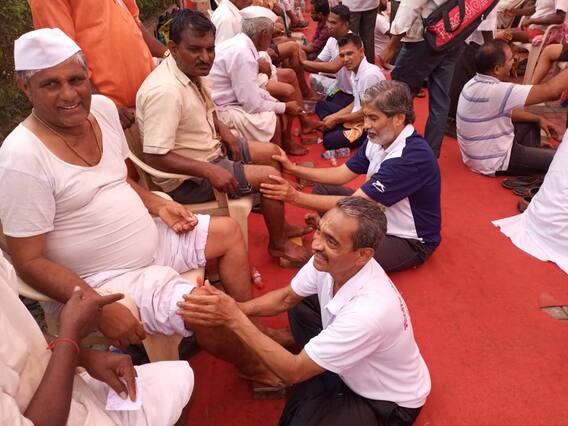 Ashadhi Wari 2023 : दोन दिवसांच्या पुणे मुक्कामानंतर संतश्रेष्ठ श्री ज्ञानेश्वर महाराजांची पालखी पंढरीकडे प्रस्थान ठेवते. पुणे ते सासवड हा लांबचा टप्पा पार करताना अवघड अशी दिवेघाटाची वाट चढून आल्यावर दमलेल्या पायांना योग साधकांकडून तिळाच्या तेलाने मसाज केली. या आगळ्यावेगळ्या मसाज सेवेने वारकरी सुखावले आणि उत्साहाने पुढे मार्गस्थ झाले. वारकऱ्यांची सेवा म्हणजेच विठुरायाची सेवा म्हणत अनेक लोक वारकऱ्यांची मसाज करुन देण्यासाठी पुढे येतात.