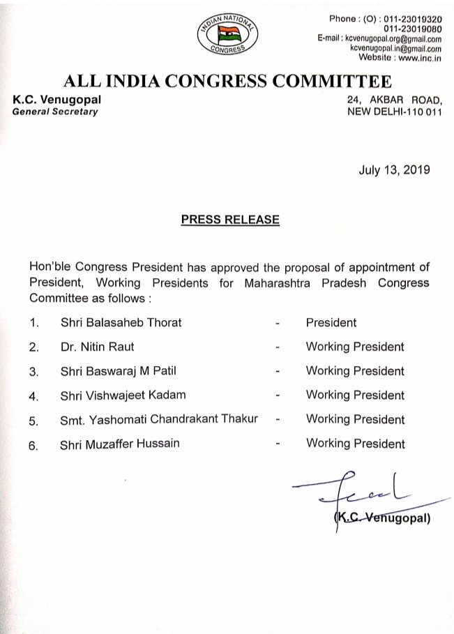 LIVE BLOG | बाळासाहेब थोरातांची महाराष्ट्र काँग्रेसच्या प्रदेशाध्यक्षपदी निवड, 5 कार्याध्यक्षांचीही नियुक्ती