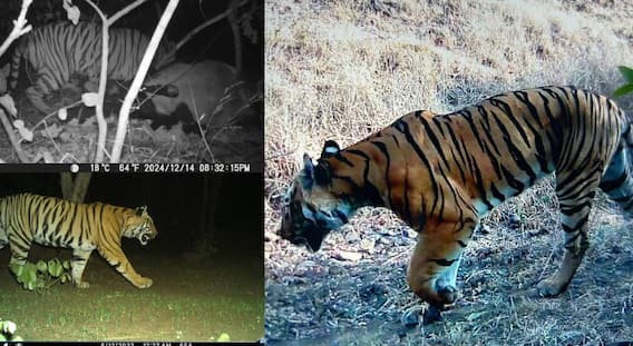 Tiger in Dharashiv : मराठवाड्यातील बालाघाटच्या डोंगर रांगातील रामलिंग अभयारण्यात वाघाचं दर्शन झालं. वनविभागाने बिबट्यासाठी ट्रॅप कॅमेरे लावले होते. त्यामध्ये वाघाची छबी कैद झाली. मराठवाड्यातील धाराशिवमध्ये वाघाचे दर्शन व्हायची ही पहिलीच वेळ आहे. दरम्यान हा वाघ पाचशे किलोमीटरचा प्रवास करत यवतमाळहून धाराशिवमध्ये आल्याची माहिती आहे. कॅमेरात कैद झालेला वाघ साधारण तीन वर्षाचा असून हा वाघ यवतमाळच्या टिपेश्वर अभयारण्याची T22 वाघिणीचा कब असल्याचं सांगितलं जात आहे.