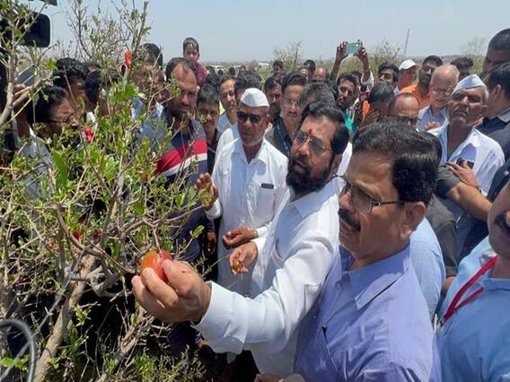 CM Eknath Shinde In Ahmednagar : गेल्या तीन चार दिवसांपासून राज्यातील अनेक भागात अवकाळी पावसाने हजेरी लावली आहे. मराठवाडा, विदर्भ आणि पश्चिम महाराष्ट्रातील शेतकऱ्यांना याचा मोठा फटका बसला असून, अतोनात नुकसान झाले आहे. त्यामुळे झालेल्या नुकसानीची पाहणी करण्यासाठी मुख्यमंत्री एकनाथ शिंदे (CM Eknath Shinde) स्वतः शेतकऱ्यांच्या बांधावर जाऊन पाहणी करताना पाहायला मिळत आहे. मुख्यमंत्री शिंदे यांनी आज अहमदनगर जिल्ह्यातील (Ahmednagar District) नुकसानग्रस्त भागाची पाहणी केली असून, मराठवाड्यातील धाराशिव येथील भागातील देखील पाहणी करणार आहे. यावेळी मुख्यमंत्री शिंदे यांनी बांधावर जाऊन शेतकऱ्यांशी संवाद साधत त्यांच्या अडचणी जाणून घेतल्या.