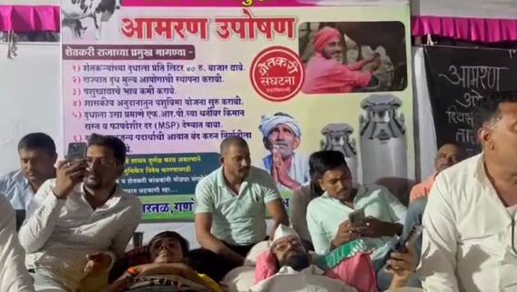 Agitation for Milk Price in Akole Ahmednagar : सध्या राज्यात दूध दराच्या (Milk Price) मुद्यावरुन चांगलच वातावरण गरम झाल्याचं वातावरण दिसत आहे. दूध उत्पादक शेतकरी रस्त्यावर उतरुन सरकारचा निषेध करत आहे. दरम्यान, अहमदनगर (Ahmednagar) जिल्ह्यातील अकोले (Akole) तालुक्यातील गणोरे गावात शुभम आंबरे आणि संदिप दराडे या तरुणांनी दूध दरासाठी आमरण उपोषण (Fasting to death) सुरु केलं आहे. आज या उपोषणाचा सहावा दिवस आहे. दुधाला किमान 40 रुपये हमीभाव मिळावा अशी यांची मागणी आहे. या तरुणांच्या समर्थनासाठी परिसरातील गावे एकवटली आहेत.