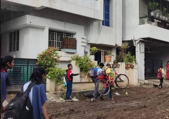 कोणाची सायकल चिखलात रुतली तर कोण सायकल उचलून घेऊन शाळेत निघालं. बीड शहरात असलेल्या राजमुद्रानगरमधला हा प्रकार घडला. रात्री झालेल्या मुसळधार पावसामुळे या रस्त्याची अवस्था चिखलमय झाली आणि पोरांच्या शाळेला सुट्टी मिळाली.