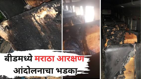 बीडच्या घोडका राजुरीजवळ एका एसटी बससमोर अचानक तीन अज्ञात लोकांनी कार आडवी लावली. त्यानंतर एसटी बसमधून चालक आणि मेकॅनिकला खाली उतरवलं, त्यानंतर त्या तिघांनी एसटी बसमध्ये पेट्रोल ओतलं आणि बसमधील सीट पेटवले. संबंधितांनी या वेळी 'एक मराठा, लाख मराठा' अशी घोषणाबाजी केली. दरम्यान, चालक आणि मेकॅनिकनं प्रसंगावधान राखून आग विझवली. तोपर्यंत बसमधील 4 सीट जळून खाक झाल्या होत्या.