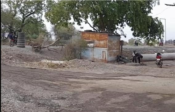 बुलढाणा: अनेक वर्षांपासून काम सुरू असलेल्या शेगाव - खामगाव मार्गावर काम पूर्ण करण्यासाठी मार्ग बनविणाऱ्या ठेकेदाराचा अजब नमुना समोर आला आहे. शिल्लक मार्गच काम लवकर पूर्ण करण्याच्या घाईत चक्क मध्यभागी पंक्चरचे दुकान तसेच ठेवून दुकानाच्या दोन्ही बाजूने काम करून ठेकेदार आता आपल बस्तान गुंडाळण्याचा तयारीत आहे.