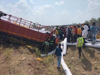 तर नागपूर कॉरिडॉरवर मेहकर जवळ चेनेज 280 वर एका ट्रक चालकाला झोप लागल्यामुळे ट्रकवरील नियंत्रण सुटून ट्रक बेरिअर तोडून महामार्गाच्या खाली जाऊन अपघात झाला. या अपघातामध्ये चालक दिनेशकुमार तिवारी (रा.आझमगड) यांचा जागीच मृत्यू झाला आहे.