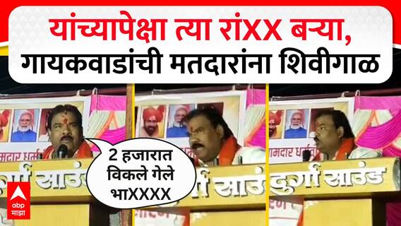 तुम्ही फक्त एक मत मला देऊ शकत नाही. फक्त दारू, मटण आणि पैसे. अरे दोन-दोन हजारात विकले गेले भाडXX साले. यांच्यापेक्षा तर रांX बऱ्या. एकीकडे हा आमदार मतदारसंघाचा विकास करायला निघालाय. लेकी-बाळांचे कल्याण करायला निघालाय. दुसरीकडे हे लोक म्हणतात की संजय गायकवाडला पाडा.