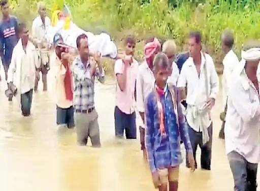 महत्त्वाचं म्हणजे आजादी गौरव पदयात्रेत या जिल्ह्यातील तीन काँग्रेस आमदार सहभागी झाले आहे. एक आमदार याच भागाचं प्रतिनिधित्त्व करतो. तरीही देखील ग्रामीण भाग विकासापासून किती दूर आहे याची प्रचिती येते. करंजी गावात स्मशानभूमीकडे जाणाऱ्या मार्गात कोणताही पूल नाही. परिणामी कच्च्या रस्त्यावर पुराचं पाणी आलं. त्यातच गावातील रवी अतराम यांचा मृत्यू झाला आणि अंत्यसंस्कार करण्यासाठी ग्रामस्थांना स्मशानभूमीपर्यंत पोहोचण्यासाठी गुडघाभर पाण्यातून जावं लागलं.