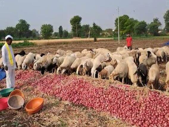 Onion Price : सध्या राज्यातील कांदा (Onion) उत्पादक शेतकरी संकटात सापडला आहे. कारण कांद्याच्या दरात मोठी घसरण झाली आहे. याचा मोठा आर्थिक फटका शेतकऱ्यांना (Farmers) बसत आहे. कांद्याला हजारो रुपयांचा खर्च करुन हाती काहीच लागत नसल्याने शेतकरी चिंतेत आहेत. दरम्यान, छत्रपती संभाजीनगर (chhatrapati sambhaji nagar) जिल्ह्यातील वैजापूर तालुक्यातील तलवाडा येथील एका शेतकऱ्याने कांद्याला दर नसल्याने, आपलं एक एकरमधील कांद्याचं पीक मेंढरांसमोर टाकलं आहे.