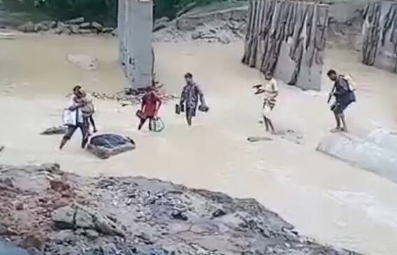 जोरदार पावसामुळे दोन गावांना जोडणारा पूल वाहून गेला