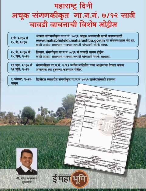 मुंबई: महाराष्ट्र दिनाच्या मुहूर्तावर फडणवीस सरकारने महत्त्वाचा कार्यक्रम हाती घेतला आहे. सरकारने 7/12 दुरुस्ती आणि चावडी वाचन विशेष मोहीम सुरु केली आहे. यानुसार तुमचा ऑनलाईन सात-बारा उतारा योग्य आहे का हे तपासून पाहा. तुम्ही तुमचा सात/बारा https://mahabhulekh.maharashtra.gov.in/ या वेबसाईटवर पाहू शकाल. जर तुमच्या उताऱ्यात काही त्रुटी असतील तर 1 मे 2017 ते 15 मे 2017 पर्यंत गावातील तलाठ्याशी संपर्क साधा. 15 मे ते 15 जून 2017 यानंतर 15 मे 2017 ते 15 जून 2017 पर्यंत संगणीकृत 7/12 चे चावडी वाचन होईल. यामध्येही काही आक्षेप असल्यास, गाव तलाठीशी संपर्क साधा. 16 जून ते 31 जुलै 2017 संगणकीकृत 7/12 मधील माहितीत प्राप्त आक्षेपांचा विचार करुन आवश्यक त्या दुरुस्त्या करण्यात येतील.1 ऑगस्ट 2017 1 ऑगस्टपासून तुम्हाला डिजीटल स्वाक्षरीत 7/12 उपलब्ध होतील. त्यासाठी तुम्हाला चावडीत/ग्राम पंचायतमध्ये किंवा तलाठी कार्यालयात जाण्याची गरज नसेल. युद्धपातळीवर ऑनलाईन सात-बाराचं काम सध्या काही जिल्ह्यात ऑनलाईन सातबारा दिला जात नाही. दफ्तरातील सातबारा आणि संगणकावरील सातबारा यामध्ये थोडी तफावत असल्याने 7/12 नाहीत. त्यामुळेच सार्वत्रिक ऑनलाईन सात-बारा सध्या उपलब्ध करुन देण्यात आलेला नाही. ही त्रुटी दूर करण्यासाठीच एडिट मोडूल म्हणजेच सात-बारा दुरुस्तीचे सॉफ्टवेअर उपलब्ध करून देण्यात आले आहे. सध्या सर्व तलाठी आणि मंडळ अधिकारी ऑनलाईन पद्धतीने याच कामात गेल्या नऊ महिन्यांपासून व्यस्त आहेत. आता सर्वच जिल्ह्याची एडिटची सरासरी टक्केवारी 80 % झाली आहे. 20% राहिलेले काम झाले की सर्व सातबारे ऑनलाईन उपलब्ध होतील. यासाठी तलाठी कार्यालयात जाण्याची आवश्यकता असणार नाही. ऑनलाईन पैसे देऊन किंवा महा ई सेवा केंद्रातून डिजीटल सहीचा वैध कायदेशीर सात - बारा मिळेल. सर्व नागरिक आणि शेतकरी यांना आवाहन करण्यात येत आहे की मोबाईलवर,महा ई सेवा केंद्र, सायबर कॅफे या ठिकाणी महाभूलेख या वेबसाईटवर आपण आपला सातबारा तपासावा. काही त्रुटी असतील तर तातडीने तलाठ्याच्या निदर्शनास आणून द्या, म्हणजे तो सातबारा दुरुस्त करता येईल.