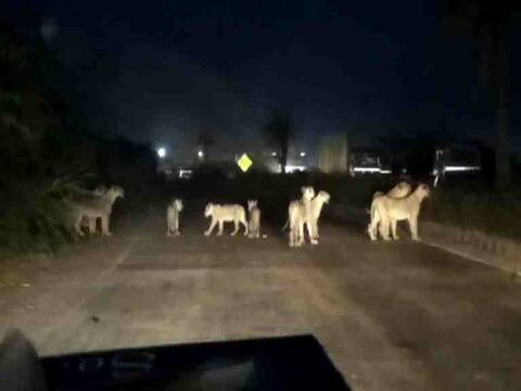 गुजरात लायन्स ! अमरेली हायवेवर 12 सिंहांचा ठिय्या
