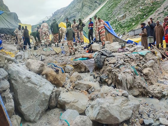 Amarnath Yatra Cloudburst : अमरनाथ गुहेजवळ ढगफुटी होऊन पूर आल्याने 16 जणांचा मृत्यू झाला आहे. या ठिकाणी अद्यापही बचावकार्य सुरुच असून रडार यंत्रणेद्वारे ढिगाऱ्याखाली अडकलेल्या लोकांचा शोध घेतला जात आहे. भारतीय सैन्याच्या अधिकाऱ्यांनी या संदर्भात माहिती देत सांगितलं की, लष्कराकडून 4000 रहार लावण्यात आले आहेत. यामुळे ढिगाऱ्याखाली अडकललेल्या लोकांचा शोध घेण्यात मदत होणार आहे. दरम्यान ढगफुटीमुळे स्थगित करण्यात आलेली यात्रा सोमवारपासून पुन्हा सुरु करण्यात आली आहे.