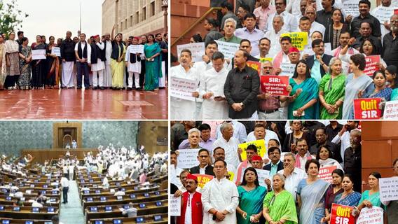 त्यांच्यासोबत प्रियांका गांधी, अखिलेश यादव देखील दिसले. राहुल, अखिलेश यांनी गळ्यात काळ्या फिती बांधून निषेधात भाग घेतला. आप खासदार संजय सिंह यांनी SIR च्या 'संवैधानिक आणि निवडणूक परिणामांवर' चर्चा करण्यासाठी राज्यसभेत प्रस्तावाची सूचना दिली आहे. आज त्यावर चर्चा होऊ शकते.बिहारमधील मतदार पडताळणीवरून संसदेच्या दोन्ही सभागृहात गोंधळ सुरूच होता. त्यानंतर लोकसभा आणि राज्यसभेचे कामकाज दुपारी २ वाजेपर्यंत तहकूब करण्यात आले.
