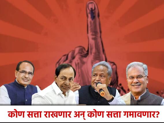 Assembly Election Results 2023 : लोकसभेची (Lok Sabha 2024) सेमी फायनल म्हणून पाहिल्या जात असलेल्या चार राज्यांच्या निवडणुकीचा निकाल आज जाहीर होणार आहे. राजस्थान (Rajasthan Election Result 2023), मध्य प्रदेश (Madhya Pradesh Election Election Result 2023), छत्तीसगड ( Chhattisgarh Election Election Result 2023) आणि तेलंगणा (Telangana Election Election Result 2023) या चार राज्यांमध्ये मतमोजणी होणार आहे. तर, मिझोरममधील मतमोजणी पुढे ढकलण्यात आली आहे. तेलंगणामध्ये सत्ताधारी भारत राष्ट्र समिती आणि काँग्रेसमध्ये थेट निवडणूक आहे. तर, या राज्यात भाजप आपलं संख्याबळ वाढवण्याच्या प्रयत्नात आहे. तर, राजस्थान, मध्य प्रदेश आणि छत्तीसगड या राज्यात काँग्रेस विरुद्ध भाजप अशी थेट लढत आहे. त्यामुळे आगामी लोकसभा निवडणुकीच्या दृष्टीने ही निवडणूक महत्त्वाची समजली जात आहे.