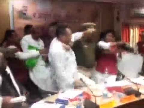 उत्तर प्रदेशमधील संत कबीरनगर जिल्ह्यात भाजपच्या आमदार आणि खासदारामध्ये फ्री स्टाईल हाणामारी पहायला मिळाली.