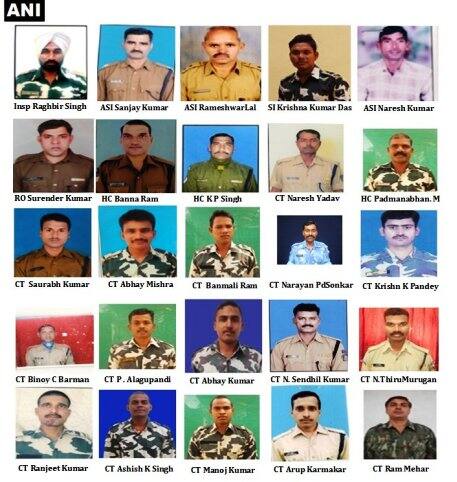 25 जवान शहीद छत्तीसगडच्या सुकमा जिल्ह्यात सोमवारी 24 एप्रिलला नक्षलवाद्यांच्या हल्ल्यात सीआरपीएफचे 25 जवान शहीद झाले. तर 6 जवान गंभीर जखमी झाले. सुकमा जिल्ह्यातील चिंतागुफा परिसरात सुमारे 300 नक्षलवाद्यांनी सीआरपीएफच्या बटालियन 74 वर नक्षलवाद्यांनी हल्ला केला. या बटालियनमध्ये 90 जवान होते.