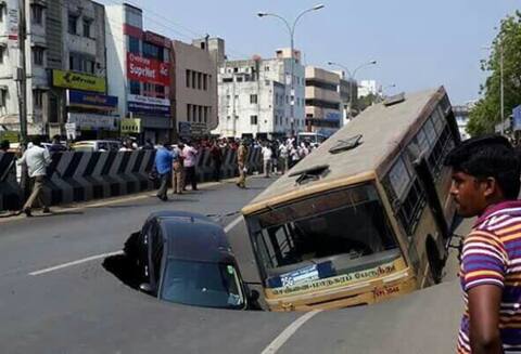 चेन्नई : तामिळनाडूची राजधानी चेन्नईत मेट्रोचं काम सुरू असताना बस स्टॉपसमोरील रस्ता खचून अख्खी बस आणि कार रस्त्यावरील खड्ड्यात अडकली. सुदैवाने यात कोणतीही जीवितहानी झाली नाही. बसमधील 35 प्रवाशांना ताबडतोब बसमधून उतरवण्यात आलं. बसचालकाने दिलेल्या माहितीनुसार बस स्ट़ॉपवर बस थांबलेली असताना अचानक रस्ता खचला आणि बसचे टायर खचलेल्या रस्त्यात धसू लागले. चेन्नईत सध्या मेट्रोचं काम सुरु असल्याने खोदकाम सुरु आहे. भुयारी रस्त्याचं खोदकाम करत असताना ही घटना घडली, अशी माहिती मेट्रो अधिकाऱ्यांनी दिली आहे. बस आणि कार खड्ड्यात अडकल्यानंतर पोलिसांनी तातडीने वाहतूक दुसऱ्या रस्त्याने वळवली. अग्नीशमन दलाच्या जवानांनी बस आणि कारला बाहेर काढण्याचा प्रयत्न केला. चेन्नईत गेल्या वर्षापासून रस्ता खचण्याच्या घटना घडत आहेत.