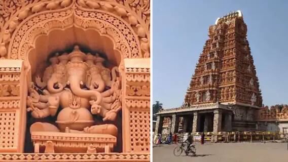 Ganesha temple idols: 11व्या शतकात बांधलेले श्रीकांतेश्वर मंदिर कर्नाटकातील म्हैसूर येथील नांजनगुड येथे आहे. भगवान शिवाच्या या मंदिराच्या भिंतीवर भगवान श्री गणेशाच्या ३२ रूपांच्या मूर्ती आहेत. जे या मंदिराचे वैशिष्ट्य आहे. संपूर्ण जगात असे वैशिष्ट्य असलेले हे एकमेव मंदिर आहे. मंदिराचे प्रवेशद्वार 120 फूट उंच आहे, जे त्याच्या अंगणात उघडते. मंदिराच्या आत श्रीकांतेश्वराची म्हणजेच महादेवाची मूर्ती दिसते. या मूर्ती गव्हाच्या रंगाच्या दगडापासून बनवल्या आहेत.