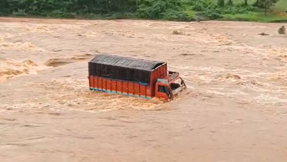 Saputara News : राज्यात सध्या पावसाचा (Rain) जोर वाढल्याचे दिसून येत आहे. पावसामुळे धरणांच्या पाणीसाठ्यात देखील मोठ्या प्रमाणात वाढ होत असून नदी नाले तुडुंब भरून वाहत आहे. गुजरात हद्दीत असलेल्या सापुतारा (Saputara) परिसरात मुसळधार पाऊस (Heavy Rain) बरसत असून उगाचिचपाड ते अंबापाडा या रस्त्यावर पुराच्या पाण्यात आयशर टेम्पो डोळ्यादेखत वाहून गेला आहे. यात पाण्यात अडकलेल्या दोन जणांना गावकऱ्यांनी पाण्यातून बाहेर काढले आहे.
