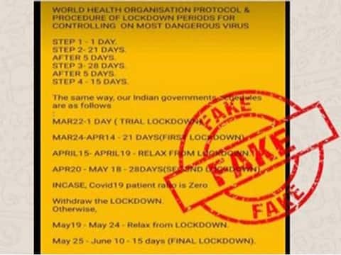 वर्ल्ड हेल्थ ऑर्गनायजेशनच्या नावाने व्हायरल करण्यात आलेल्या फेक सर्क्युलेशनमध्ये सांगण्यात आलं आहे की, भारतात पुढे लॉकडाऊनचे नियम कसे असतील, तसेच 15 एप्रिलपासून 19 एप्रिलपर्यंत लॉकडाऊन हटवण्यात येईल तर त्यानंतर 20 एप्रिलपासून ते 18 मेपर्यंत पुन्हा लॉकडाऊन करण्यात येईल. जर यादरम्यान कोरोना व्हायरसच्या रूग्णांमध्ये कपात आली तर लॉकडाऊन काढून टाकण्यात येईल. दरम्यान, आता डब्ल्यूएचओने स्पष्ट केलं आहे की, हा व्हायरल होणारा मेसेज फेक आहे.