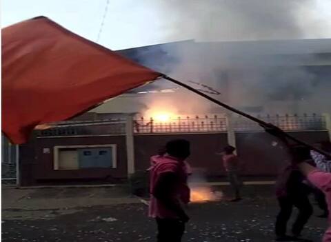 बेळगाव : कर्नाटक विधानसभा निवडणुकीत महाराष्ट्र एकीकरण समितीला जनतेने साफ नाकारलं. त्यानंतर निकालाच्या दुसऱ्याच दिवशी महाराष्ट्र एकीकरण समितीचे बेळगाव शहर अध्यक्ष किरण ठाकूर यांच्या घरावर फटाके फोडण्यात आले. किरण ठाकूर घरात नसल्यामुळे सुदैवाने त्यांना कोणतीही दुखापत झाली नाही. ही घटना कॅमेरात कैद झाली आहे, मात्र त्यांच्या घरावर कोणी फटाके फोडून टाकले, हे अद्याप स्पष्ट होऊ शकलेलं नाही. बेळगावात मराठी जनांमध्ये पडलेली फूट महाराष्ट्र एकीकरण समितीच्या मुळावर उठली. कर्नाटक विधानसभा निवडणुकांमध्ये महाराष्ट्र एकीकरण समितीचा सुपडासाफ झाला. त्यांना एकही जागा मिळवण्यात यश आलेलं नाही. 'महाराष्ट्र एकीकरण समिती' किरण ठाकूर आणि दीपक दळवी यांच्या दोन गटांमध्ये विभागली गेल्यामुळे यंदाच्या निवडणुकीत त्यांचा पराभव निश्चित मानला जात होता. बेळगाव जिल्ह्यातील 18 विधानसभा मतदारसंघात 76 टक्के मतदान पार पडलं होतं. मात्र 18 पैकी एकाही जागेवर महाराष्ट्र एकीकरण समितीचा उमेदवार निवडून आला नाही.