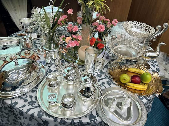 सोने आणि चांदीच्या भांड्यांमध्ये जेवण