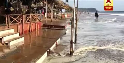 गोव्यात समुद्रातील पाण्याच्या पातळीत अचानक वाढ झाल्यानं मोठ्या लाटा उसळून किनाऱ्यावरील शॅकमध्ये पाणी घुसल्यानं मोठं नुकसान झालं आहे.