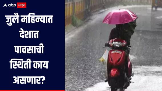 India Rain News : यंदाचा जुलै महिन्यात देशाच्या बहुतांश भागांमध्ये सरासरीपेक्षा जास्त पावसाची (Rain) नोंद होण्याची शक्यता आहे. मात्र ईशान्य व पूर्व भारतातील बहुतांश भाग, तसेच दक्षिणेकडील काही टोकाचे परिसर आणि वायव्य भारतातील काही भागांत पर्जन्यवृष्टी सरासरीपेक्षा कमी राहण्याचा इशारा देखील हवामान विभागानं (IMD) दिला आहे. जुलै महिन्यात पावसाची नेमकी स्थिती कशी राहील याबाबतची माहिती भारतीय हवामान विभागानं दिली आहे.