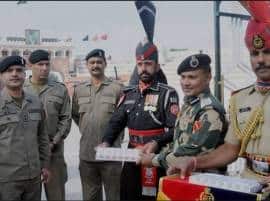 वाघा बॉर्डरवर पाक सैन्याला मिठाई वाटून भारतीय सैन्यातर्फे शुभेच्छा