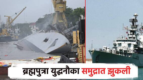 मुंबई : राजधानी मुंबईतील अरबी समुद्रातील विविध बंदरावरुन जहाजांची ये-जा सुरू असते. येथील काही महत्त्वाच्या बंदरावर युद्धनौकाही तैनात असतात. मुंबई (mumbai) हे देशाची आर्थिक राजधानी आणि महत्त्वाचं शहर आहे. त्यामुळे, युद्धनौकांच्या माध्यमतून समुद्री सुरक्षा तैनात करण्यात येते. त्यापैकीच एक असेलल्या आयएनएस ब्रह्मपुत्रा या युद्धनौकाचा समुद्रात अपघात झाल्याची माहिती आहे, या युद्धनौकामध्ये (battleship) रविवारी आग लागल्याची घटना घडली होती. त्यानंतर, ती समुद्रातील युद्धनौका एका बाजुने झुकल्याने मोठा अपघात होण्याची शक्यता वर्तवली जात आहे. बचाव पथक आणि संबंधित यंत्रणांकडून युद्धनौका पूर्ववत करण्यासाठी शर्थीचे प्रयत्न सुरू आहेत. मात्र, आगीच्या (fire) घटनेनंतर या युद्धनौकेवरील एक अधिकारी बेपत्ता झाल्याची माहिती असून त्यांचा शोध घेतला जात आहे.