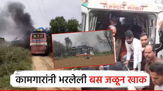 जयपूर : राजस्थानच्या जयपूरमध्ये बस अपघाताची (Accident) धक्कादायक घटना घडली असून बसमधील 2 प्रवाशांचा मृत्यू झाला आहे. जयपूर येथे कामगारांना घेऊन जाणाऱ्या खासगी बसला अचानक आग लागल्याने बसमधील (Bus) 12 प्रवासी आगीच्या झोक्यात आले होते. त्यापैकी, 2 जणांचा मृत्यू झाला असून अनेकजण गंभीर जखमी आहेत. जयपूर शहरापासून 65 किमी दूर मनोहरपूर परिसरात ही दुर्घटना घडली. त्यामध्ये, बस पूर्णपणे जळून खाक झाली आहे.