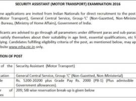 नवी दिल्ली : केंद्रीय गृह मंत्रालयाच्या अंतर्गत असलेल्या गुप्तचर यंत्रणा अर्थात इंटेलिजन्स ब्युरोमध्ये अनेक पदं भरण्यात येणार आहेत. यामध्ये सिक्युरिटी असिस्टंट (मोटर्स ट्रान्सपोर्ट) पदासाठी ऑनलाईन अर्ज मागविण्यात येत आहेत. 'महान्यूज'ने याबाबतचं वृत्त प्रसारित केलं आहे. या पदासाठी ऑनलाईन अर्ज करण्याची अंतिम तारीख ६ ऑगस्ट २०१६ आहे. याबाबतची अधिक माहिती www.mha.nic.in या संकेतस्थळावर उपलब्ध आहे.