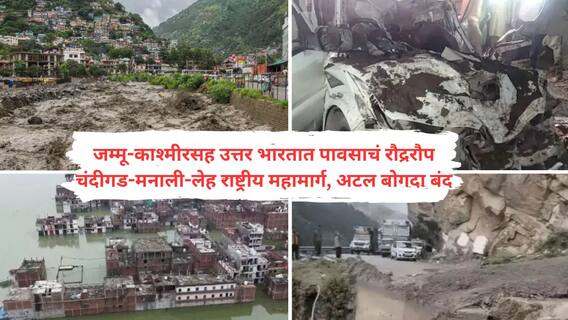 Landslide in Himachal Manali Leh highway closed: मान्सूनच्या पावसाने पर्वतांमध्ये आपत्ती आणली आहे. हिमाचल प्रदेशात शुक्रवारी सततच्या पावसामुळे अनेक ठिकाणी भूस्खलन झाले. त्यामुळे चंदीगड-मनाली-लेह राष्ट्रीय महामार्ग आणि सोलंगनाला ते अटल बोगदा हा रस्ता बंद आहे. गेल्या ३ दिवसांत मुसळधार पावसामुळे एकूण 289 रस्ते प्रभावित झाले आहेत. जम्मू-काश्मीरमध्येही सतत पाऊस सुरू आहे. काल रात्री रियासी जिल्ह्यात एका उपविभागीय दंडाधिकारी (एसडीएम) यांच्या गाडीला भूस्खलनाचा धक्का बसला. त्यांच्या गाडीवर अचानक दगड पडला. या अपघातात एसडीएम आणि त्यांच्या मुलाचा मृत्यू झाला. त्यांच्या पत्नी आणि इतर दोघे जखमी झाले.