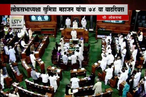 लोकसभेत सुमित्रा महाजन यांचा वाढदिवस अनोख्या पद्धतीने साजरा!