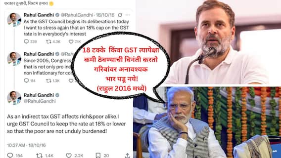 Rahul Gandhi On GST: लोकसभेतील विरोधी पक्षनेते राहुल गांधी यांनी 8 वर्षांपूर्वी म्हणजे 2016 मध्ये जीएसटीवर एक महत्त्वाचे ट्विट केले होते. ज्यामध्ये त्यांनी म्हटले होते, की, जीएसटी हा अप्रत्यक्ष कर म्हणून श्रीमंत आणि गरीब दोघांनाही समान रीतीने प्रभावित करतो. मी जीएसटी परिषदेला 18 टक्के किंवा त्यापेक्षा कमी ठेवण्याची विनंती करतो जेणेकरून गरिबांवर अनावश्यक भार पडू नये! राहुल गांधींच्या त्या विधानाची 2016 मध्ये भाजप आणि मोदी सरकारच्या मंत्र्यांनी खिल्ली उडवली होती. भाजप नेत्यांनी त्यांना पप्पू म्हटले आणि सोनिया टॅक्स असे संबोधून त्यांना ट्रोल केले. 2016 चे राहुल यांचे ट्विट अजूनही भाजपच्या लोकांची खिल्ली उडवत आहे. मोदी सरकारवर अनेकदा राहुल गांधींच्या घोषणा आणि विचारांची नक्कल केल्याचा आरोप केला जातो. पण जीएसटीचा मुद्दा आश्चर्यकारक आहे. 15 ऑगस्ट रोजी लाल किल्ल्याच्या तटबंदीवरून पंतप्रधान मोदींनी घोषणा केली की दिवाळीपर्यंत, पुढच्या पिढीच्या जीएसटी सुधारणांमध्ये फक्त दोन दर असतील: 5 आणि 18 टक्के ऑक्टोबरमध्ये दिवाळीपूर्वी जीएसटी प्रणालीमध्ये पुढील पिढीतील सुधारणांना चालना देण्याच्या उद्देशाने, कमी केलेले कर ओझे सामान्य माणूस, लघु उद्योजक आणि एमएसएमईसाठी दिवाळी भेट असेल.