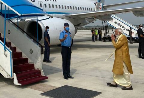 पंतप्रधानांच्या पेहरावाने सगळेच आश्चर्यचकित सामान्यत: चुडीदार पायजमा आणि कुर्ता परिधान करणारे पंतप्रधान मोदींच्या कपड्यांनी सगळ्यांनाच आश्चर्यचकित केलं. सोनेरी-पिवळा कुर्ता आणि पांढऱ्या रंगाची धोती परिधान केलेले पंतप्रधान विशेष आपल्या विमानात चढले. पंतप्रधानांनी या विशेष सोहळ्यासाठी विशेष पेहराव परिधान केला आहे. हिंदू धर्मात सोनेरी आणि पितांबरी रंग अतिशय शुभ समजला जातो. भूमिपूजनासाठी पंतप्रधांनानी हे कपडे परिधान केल्याचं म्हटलं जात आहे.