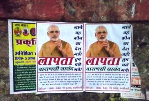 पंतप्रधान नरेंद्र मोदींच्या वाराणसी मतदार संघातील सिगरा आणि कचहरी परिसरात अनेक ठिकाणी ते हरवल्याचे पोस्टर्स लावण्यात आले आहेत. स्थानिक पोलिसांनी हे पोस्टर्स तत्काळ हटवले असून, पोस्टर लावणाऱ्याचा पोलीस कसून शोध घेत आहेत.