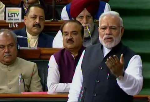 पंतप्रधानांनी आपल्या भाषणाची सुरुवातीला अर्थसंकल्पावरच्या चर्चेत सर्व सदस्यांनी सहभाग घेतल्याबद्दल आभार व्यक्त केले. यानंतर त्यांनी राहुल गांधींच्या वक्तव्यावरुन चिमटे काढले. ''राहुल गांधींनी काही दिवसांपूर्वी मी जर बोलू लागलो, तर भूकंप येईल असं वक्तव्य केलं होतं. वास्तविक, जेव्हा एखादी व्यक्ती घोटाळ्यांमध्येही सेवा भाव दाखवू लागतात. त्यावेळी त्यांची जन्मदाती आईच नव्हे, तर धरणी माताही दु: खी होते, आणि त्यांनतर भूकंप येतो.''