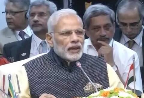 पणजी: गोव्यात सुरु असलेल्या पाच देशांच्या ब्रिक्स संमेलानात पंतप्रधान नरेंद्र मोदींनी दहशतवादाच्या मुद्द्यावरुन पाकचे वाभाडे काढले. पंतप्रधान मोदींनी पाकिस्तानचे नाव न घेता, दहशतवादाचा जन्मदाता आणि त्याला पोसणारा देश एकच असून तो भारताचा शेजारी असल्याचं म्हटलं. तसेच दहशतवाद हा जागातील सर्व अर्थव्यवस्था आणि विकासाला सर्वात मोठा धोका असल्याचंही पंतप्रधानांनी यावेळी नमुद करुन, दहशतवाद विरोधातील लढ्यात ब्रिक्स देशांनी एकत्रित येण्याचं आवाहन केलं. पाकिस्तानचे वाभाडे काढताना पंतप्रधान मोदी म्हणाले की,''हा देश केवळ दहशतवादालाच पोसतो असं नाही, तर यासाठीची पोषक मानसिकतेलाही प्रोत्साहन देतो. या मानसिकतेचा संबंध दहशतवाद आणि राजयकीय फायद्याशी जोडलेला आहे.'' शिवाय, याचा फटका भारत किंवा दक्षिण अशियालाच फटका बसला आहे असे नाही, तर मध्यपूर्व पश्चिम अशिया आणि युरोपसाठीही धोका असल्याचंही पंतप्रधानांनी यानिमित्त बोलताना सांगितलं.