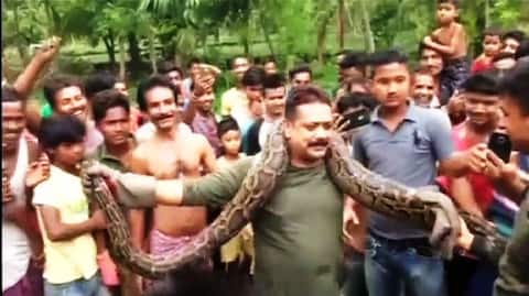 पश्चिम बंगालमधल्या एका वनरक्षकानं अजगरासोबत सेल्फी घेण्याचं धाडस केलं. पण या वनरक्षकाचा हा फाजिल आत्मविश्वास त्याला चांगलाच भोवला. अखेरीस इतर गावकऱ्यांच्या मदतीने अजगराच्या तावडीतून स्वत:ची सुटका करून घेतली.