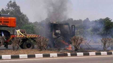 बेळगावात नॅशनल हायवेवर ‘द बर्निंग ट्रक’चा थरार